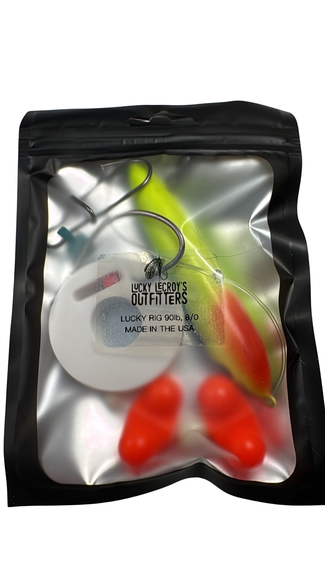 Our Lucky Rigs are designed for serious anglers who value both performance and craftsmanship, whether fishing from the bank or offshore. Each rig is built with heavy-duty monofilament leader, premium offset circle hooks, and high-strength 150-pound swivels—engineered to withstand punishing strikes from catfish, sturgeon, red and black drum, and other game fish.